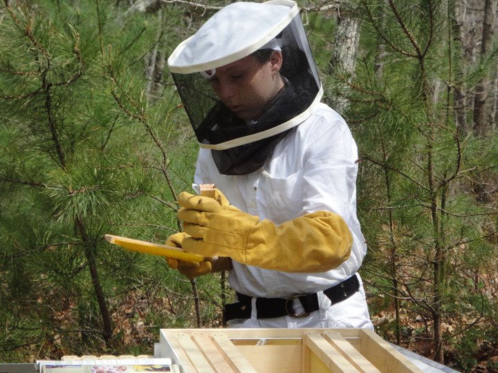 In that little box is the queen marked with a yellow dot so that I know it's her and not an impostor.